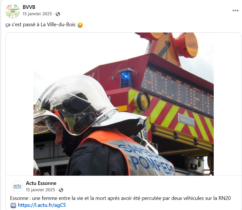Mi-janvier nous partagions un article d’actu Essonne : un piéton a été gravement blessé sur la RN20. ( cf. Essonne : une femme entre la vie et la mort après avoir été percutée par deux véhicules sur la RN20)