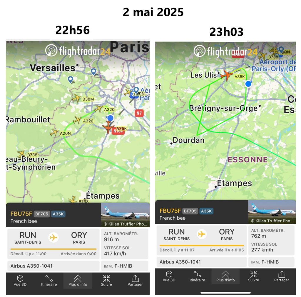 Un exemple de nuisance lié au trafic aérien parfois saturé à l’aéroport d’Orly : nous avons été survolés un soir vers 23h par un gros porteur à basse altitude alors qu’il n’avait pas réussi à prendre son tour d’atterrisage.