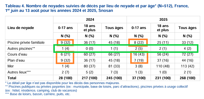 A noter qu’il y a peu de noyades dans les piscines à usage collectif.